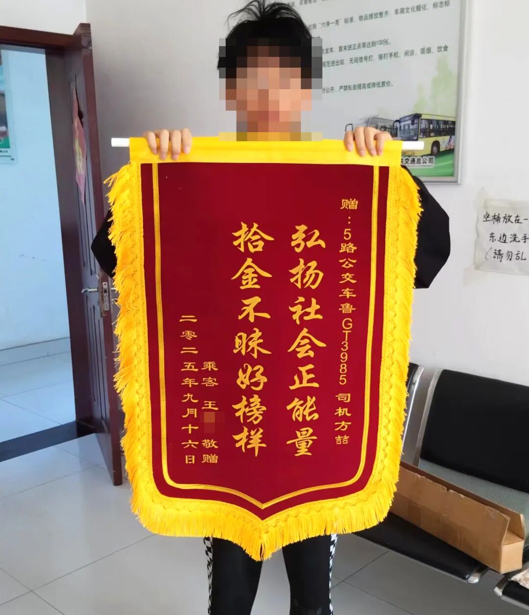 事后,郭女士将一面写有“拾金不昧 品德高尚”的锦旗送到了一公司二车队,并向4路驾驶员杨学举表达了诚挚的谢意。