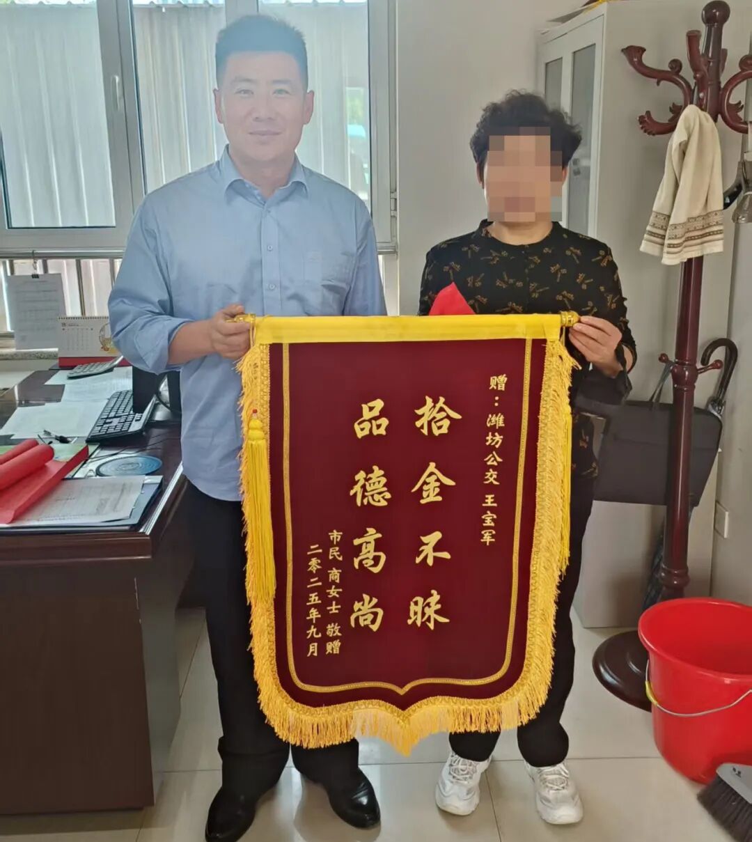 事后,商女士将一面印有“拾金不昧 品德高尚”的锦旗,专程送到了三公司府东场站,并向77路驾驶员王宝军表达了自己的谢意。